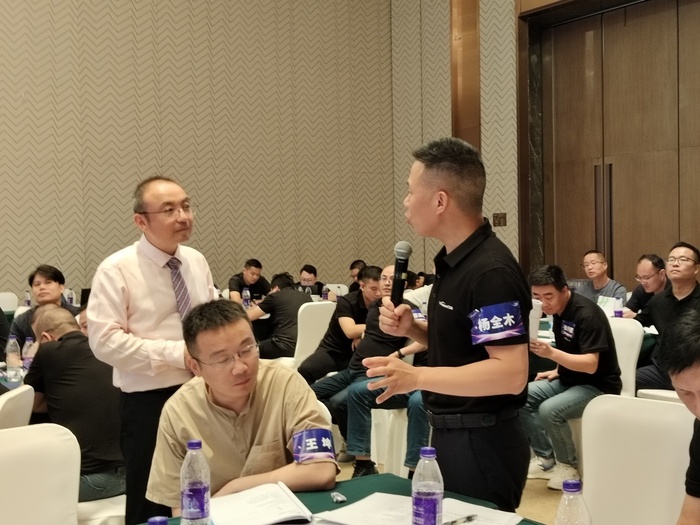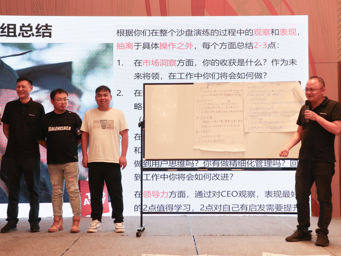 培训主管林依静女士为学员们讲解本次集训的概况和公约,期待大家能全情投入、积极参与。学员主要围绕营销战略、零售动销、渠道管理及大客户销售四大维度展开课程学习。 7月4日-5日,《Market 2 Win-赢在市场》沙盘模拟,沙盘主要围绕“战略意识、全局规划、战略规划、战略执行、战略博弈”五大维度展开分享。通过五轮商战对抗模拟、经营复盘总结等环节,快速提升学员行业洞察、经营决策、精准执行、团队领导能力。