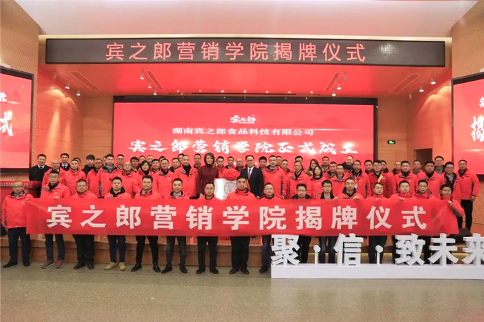 经过前期的大量准备,2021年1月7日上午,宾之郎营销学院揭牌仪式在公司总部正式举行,宾之郎公司董事长兼总经理陈晓,公司各中心、部门负责人、区域经理及总部全体行职人员,优蓝咨询首席顾问陈铁钧、优蓝咨询研发总监谭子耀出席仪式。