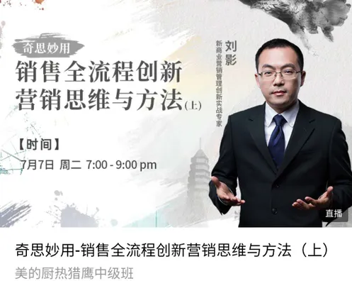 美的厨热内销 | 猎鹰九期中级班第一期课程顺利结课!发表时间:2020-07-13 10:00 2020年7月1日-9日,美的厨热猎鹰九期中级班第一期正式开启!优蓝咨询营销专家刘影老师授课《奇思妙用-销售全流程创新营销思维与方法》,一起康康学员的精彩学习~~